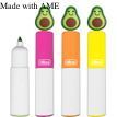 O Marca-Texto Abacatinho proporciona um jeito fofo e divertido de destacar informações importantes. Este produto, com tampa decorada com um aplique de abacate, possui uma ponta chanfrada que pode variar de 1 a 5mm, dependendo da inclinação, e está disponível nas cores neon laranja, verde, amarelo e rosa.