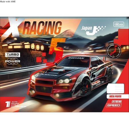 O modelo meia pauta X-Racing é horizontal tem adesivos e capa dura com estampas de cenários impressionantes e carros estilizados, todos inspirados no universo da velocidade. Garanta já o seu caderno meia pauta Tilibra para tornar as atividades escolares muito mais organizadas e divertidas.