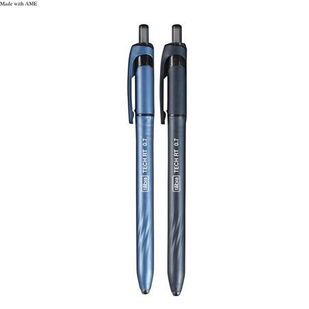 Caneta Esferográfica Retrátil 0.7mm Tech - Blister com 2 Unidades (Preta e Azul)