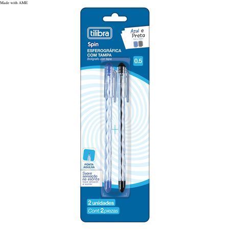Caneta Esferográfica 0.5mm Spin - Blister com 2 Unidades (Preta e Azul).