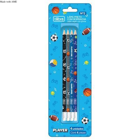 Lápis Preto Redondo com Borracha N.2 Player - Blister com 4 Unidades