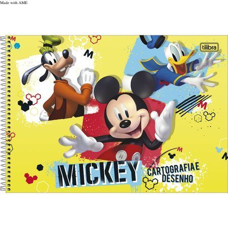 Caderno de Cartografia e Desenho Espiral Capa Dura Mickey 80 Folhas