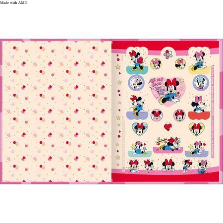 Este produto, com visual da estrela da cultura pop mundial, Minnie Mouse, capa dura com a parte interna decorada, folha dupla de adesivos e 40 folhas com pautas específicas para atividades de caligrafia, é perfeito para quem deseja aprimorar as habilidades de escrita e coordenação motora.
