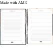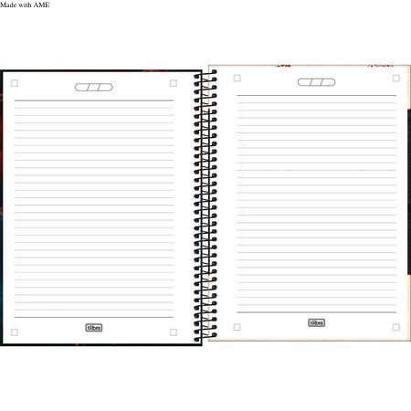 Use este modelo, com capa dura e parte interna decorada, bolsa de papel para guardar trabalhos, adesivos funcionais, folhas pautadas e espiral colorido, para anotar as aulas, fazer resumos, listar tarefas e organizar as ideias de forma prática e eficiente.