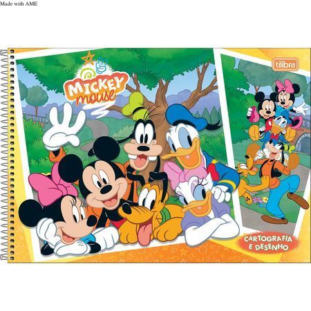 O caderno de desenho Tilibra tem capa dura com visual do camundongo atemporal, espiral, folha de adesivos e 80 folhas brancas para liberar a imaginação. Adquira já o seu!