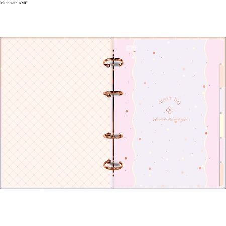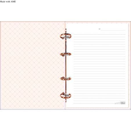 O caderno argolado Tilibra possui capa dura com detalhe metalizado e parte interna decorada, oferecendo um visual sofisticado. O produto também vem com adesivos, bolsa plástica para guardar trabalhos e anotações, jogo com seis divisórias e refil de 80 folhas pautadas e decoradas. Adquira agora o seu!