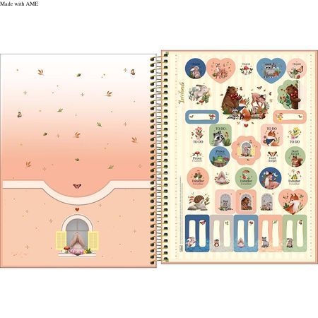 Use este modelo, com capa dura com detalhe metalizado e a parte interna decorada, bolsa de papel para guardar trabalhos, adesivos funcionais, folhas pautadas e decoradas e espiral colorido, para anotar as aulas, fazer resumos, listar tarefas e organizar as ideias de forma prática e eficiente.