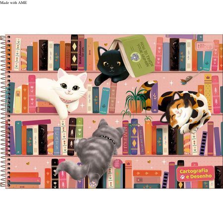 O caderno de desenho Tilibra tem capa dura com visual de gatinhos brincalhões e cheios de personalidade, espiral, folha de adesivos e 80 folhas brancas para liberar a imaginação. Adquira já o seu!
